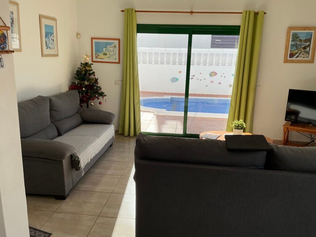 ‘Las Brisas’ is situated in a quiet area only 10 minute walk from the centre of Puerto del Carmen and the beach Playa Grand. 23 Calle Bocaina. It is a two minute walk to the supermarket and it is less than a 15 minute drive from the airport. The villa benefits from 2 double bedded rooms and a twin room with 2 fully tiled separate bathrooms. There is a well furnished lounge dining room with wi -fi ,satellite TV DVD player, ps2 and games, music centre and a selecton of games books and films. The open plan kitchen is well equipped with full oven, ceramic hob, dishwasher, microwave, fridge freezer and a separate drying area with washing machine. We provide hairdryers, fans, and a security safe as well as a cot and highchair.